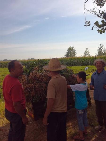 比較戲劇性的是,觀摩會進行中的時候,一位大爺騎著一輛摩托三輪經過,車上滿載著剛剛收獲的花生。看到金沂蒙在召開現場觀摩會,忍不住停下了腳步,并向現場的農民熱情打招呼:這是我家的花生,用的也是金沂蒙復合肥!過來看看咋么樣。大家立馬圍攏過來,只見三輪車上的花生也是粒粒成熟,絲毫不遜色于示范田里的花生。這位大爺得意之情溢于言表,眉飛色舞地向現場農民介紹起了他用金沂蒙復合肥的感受。