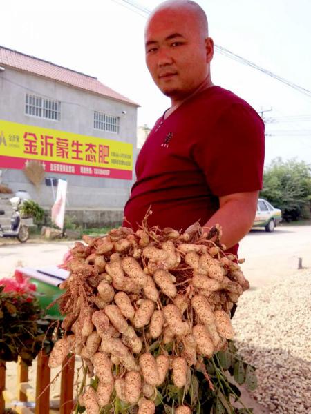 山東省莒南縣相溝鎮東結莊村的花生收獲了!為了慶祝豐收,該村的肥料經銷商李冠良組織了一場別開生面的花生果實數量比賽,并準備了各種各樣的獎品,村民們都興高采烈地積極參加。經過激烈角逐,使用金沂蒙生態肥的種植戶王從修以單株110個雙仁果的優異成績勝出。天氣是一樣的,土壤和種子也差不多,豐收與否,施肥是關鍵。所以,要想好收成,就用金沂蒙!