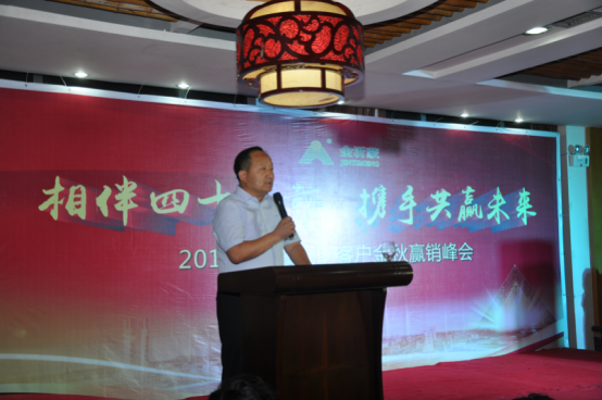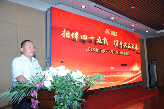 四十五年風雨同舟,四十五年攜手同行。金沂蒙在發展歷程中,與經銷商朋友相濡以沫,結下了深厚的友情。在合作分享環節,來自渦陽的楊總進行了激情澎湃的演說,并即興作詩一首。楊總作為金沂蒙2017年度的新客戶,首度合作便突破了2000噸,談及成功經驗,楊總認為,是金沂蒙的產品質量和完善服務給他奠定了堅實的基礎,再加上個人的敢干、實干加巧干,所以才實現了銷量的遞增和市場的拓展。來自利辛的趙總和亳州的李總也上臺分享了與金沂蒙的合作點滴,真實的感受,淳樸的語言,贏得了現場觀眾的陣陣掌聲。