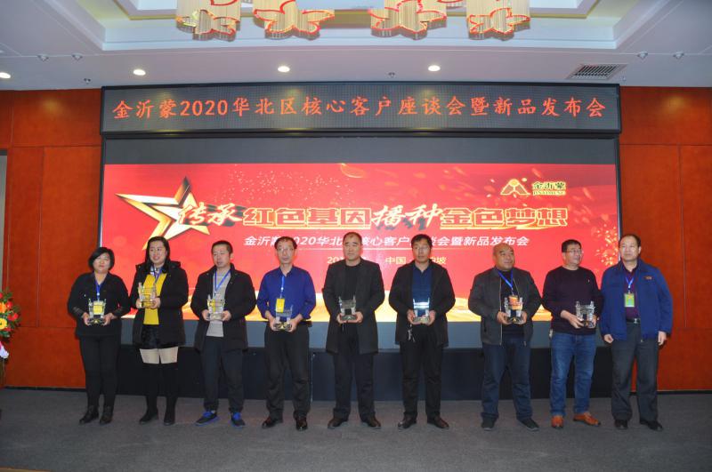 金沂蒙在發展歷程中,得到了廣大客戶朋友的大力支持,廠商之間建立了深厚的友誼,客戶的信賴與支持是金沂蒙發展的堅強后盾,讓金沂蒙在激烈的市場競爭中逆流而上。為了樹立標桿,激勵先進,金沂蒙對表現突出的客戶進行了表彰,授予“戰略合作伙伴”的榮譽稱號,金沂蒙生態肥業西北大區銷售總監趙仕金和河北大區銷售總監崔峰為獲獎者頒獎。來自河北大名的史總、山西壽陽的檀總和山西渾源的姜總分別發表了獲獎感言,分享了與金沂蒙合作的點滴,表達了將與金沂蒙攜手同行,共克時艱的信心與決心。