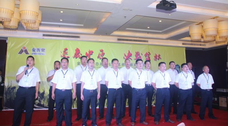 24日晚的歡迎晚宴上,金沂蒙生態肥業營銷團隊成員答謝與會嘉賓后,即興合唱了一首《真心英雄》,獻給在座的各位經銷商朋友。“把握生命里的每一分鐘,全力以赴我們心中的夢,不經歷風雨,怎么見彩虹,沒有人能隨隨便便成功!”金沂蒙營銷團隊激昂奮進的演唱,感染了現場的所有嘉賓,紛紛與他們一起合唱,山東大漢和西北大漢相同的粗獷豪邁在歌聲中碰撞融合,一起唱響了本場英雄會的主旋律。