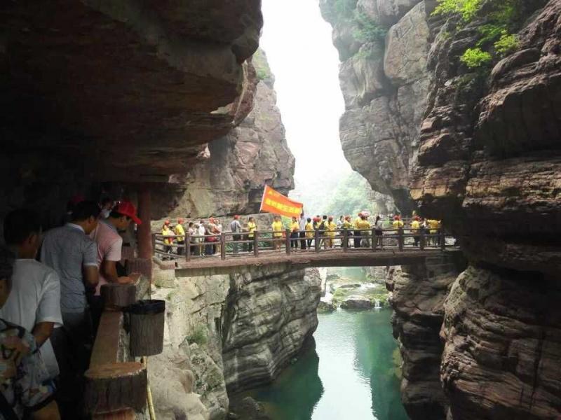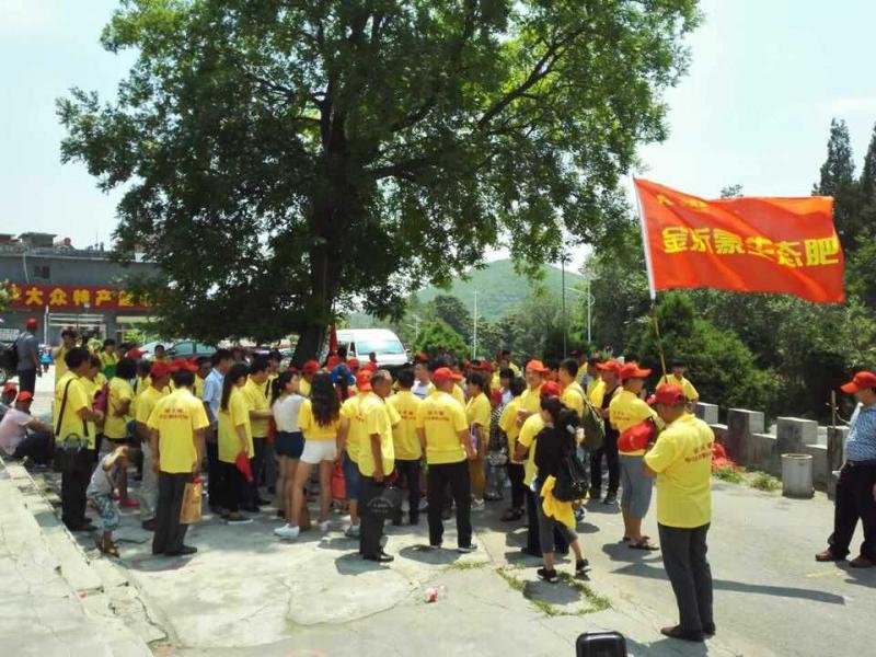 云臺山以青山綠水聞名世界,景色秀美的地質公園讓人流連忘返。7月25日,400余名來自山西、陜西、甘肅等地的金沂蒙的農資英雄們,一起登上這人間仙境,領略迷人風光。英雄們統一穿著金沂蒙寓意財富和豐收的黃色T恤,戴著寓意喜慶和吉祥的小紅帽,組織有序地行走在景區,黃衣紅帽與云臺山的青山綠水相映成趣,成為當日云臺山獨特的風景線,吸引了眾多游客的目光。