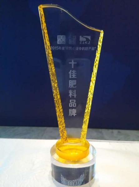 2015年12月23日,由《農資與市場》雜志社發起并主辦的2015年度“農民心目中的好產品”活動頒獎典禮在武漢歐亞會展國際酒店隆重舉行。此次調研活動足跡涵蓋全國,采取線上與線下同步開展的方式調研,評選出了十佳肥料好產品品牌等獎項。山東金沂蒙生態肥業有限公司的長效控失肥成功入選,至此,山東金沂蒙生態肥業已經連續五年榮膺該獎項。