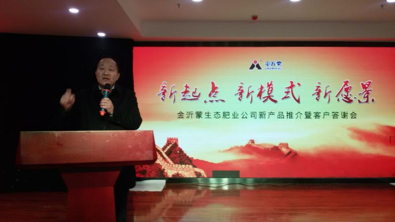 1月8日,山東金沂蒙生態肥業有限公司攜手碭山百群農資公司,在碭山縣隆重舉行金沂蒙新產品推介會暨客戶答謝會。碭山縣200余名優秀經銷商參加了會議,金沂蒙生態肥業公司銷售總監袁峰、淮海大區經理王廠遠等領導出席了會議。會議總結了2015年金沂蒙肥料在碭山的銷售情況,表彰了2015年度基層經銷商,公布了新年度銷售政策,著重推介了新產品高效聚元肥,受到經銷商的普遍歡迎。