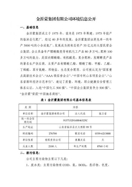 金沂蒙集團環境信息公示